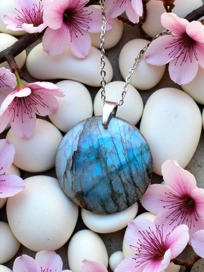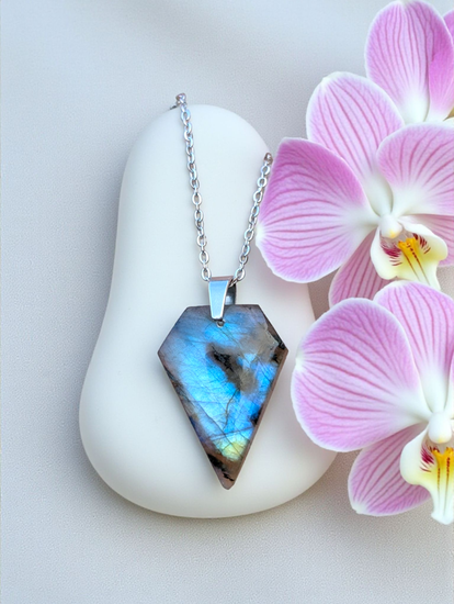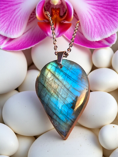 Pendentif en labradorite AAA sur chaîne en acier inoxydable au choix (fine ou snake).