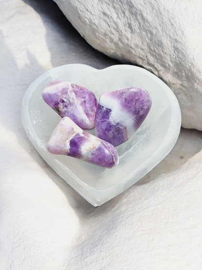 La Sélénite aide à assainir l'air environnant. Elle permet de perfectionner la qualité du sommeil. Elle aide à instaurer une sérénité intérieure. Fortifie et assoupli les tissus et atténue les douleurs. Aide à préserver de la chute de cheveux. Elle aide également en cas d'infertilité.