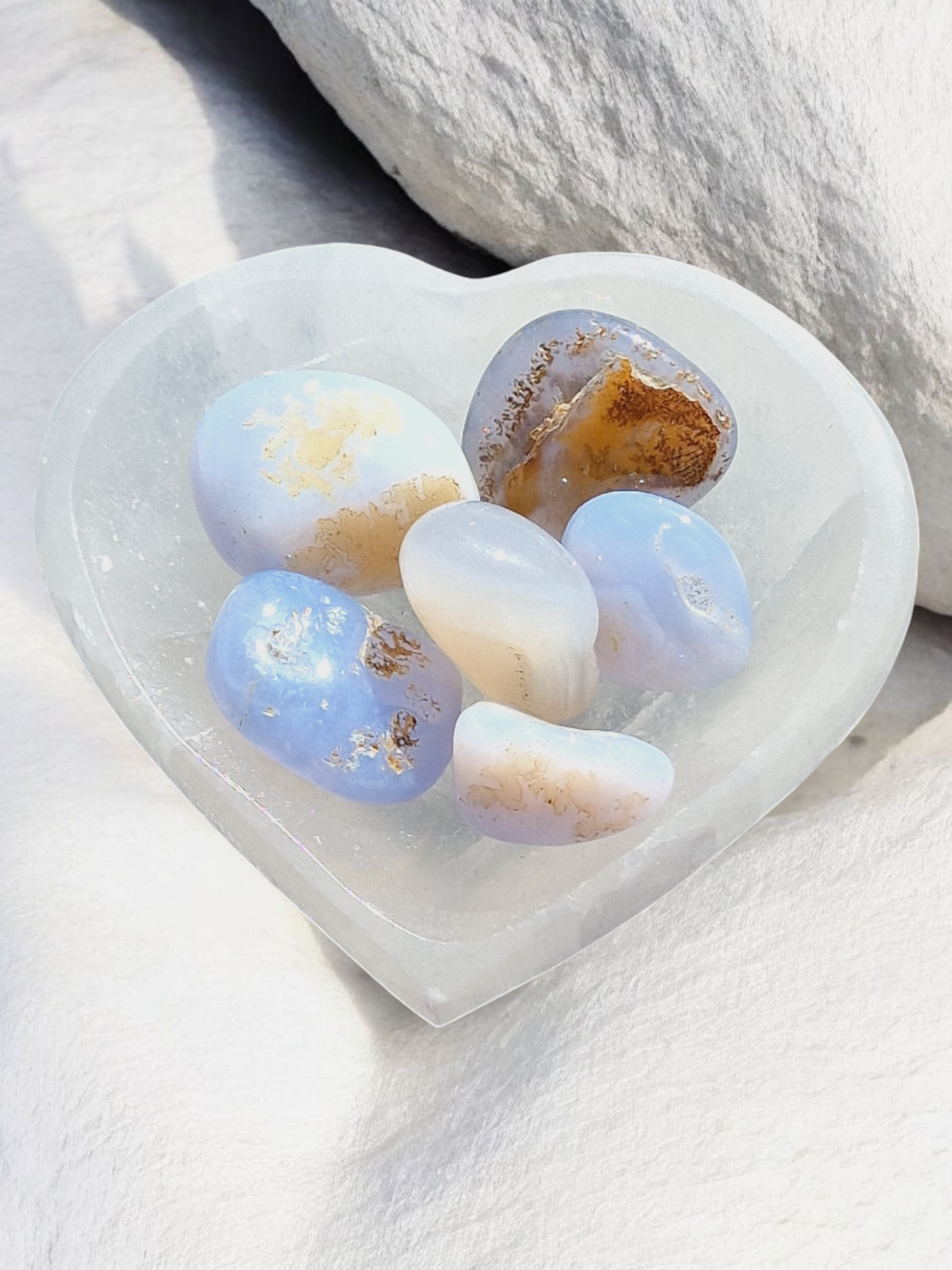Pierre roulée calcédoine bleue sur guangue Namibie A+