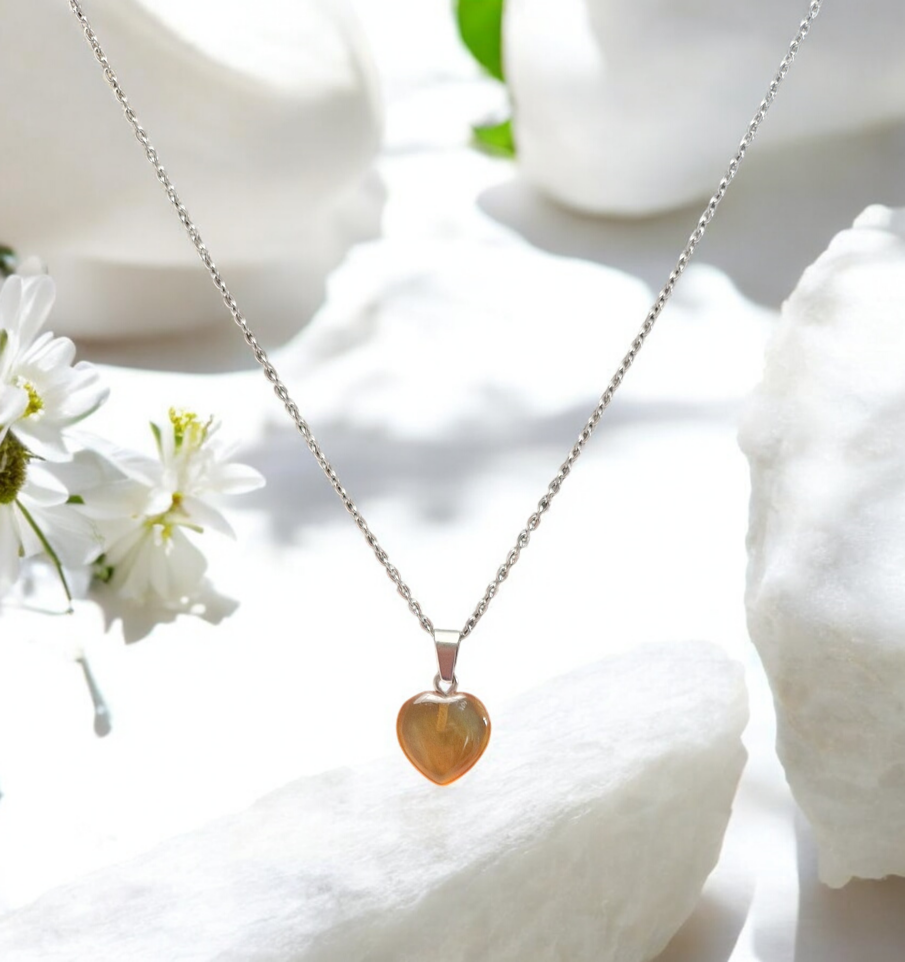 Pendentif coeur 15mm en cornaline avec chaine fine ou chaine snake à sélectionner ci dessous.