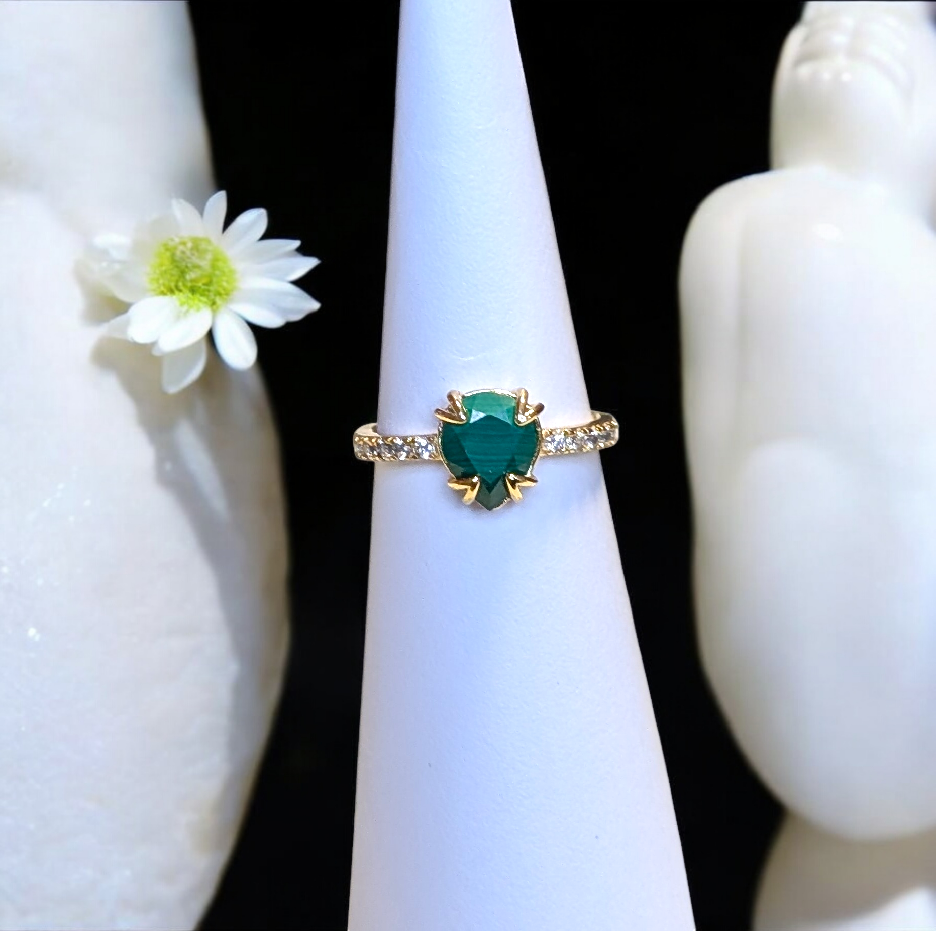 Bague en argent 925 plaqué or réglable malachite