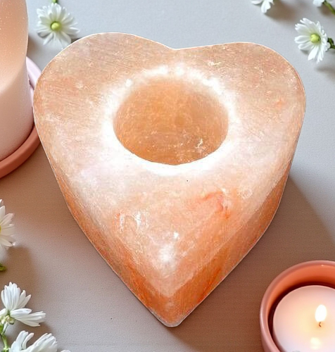 Bougeoir en cristaux de sel adapté pour bougies de petite taille.