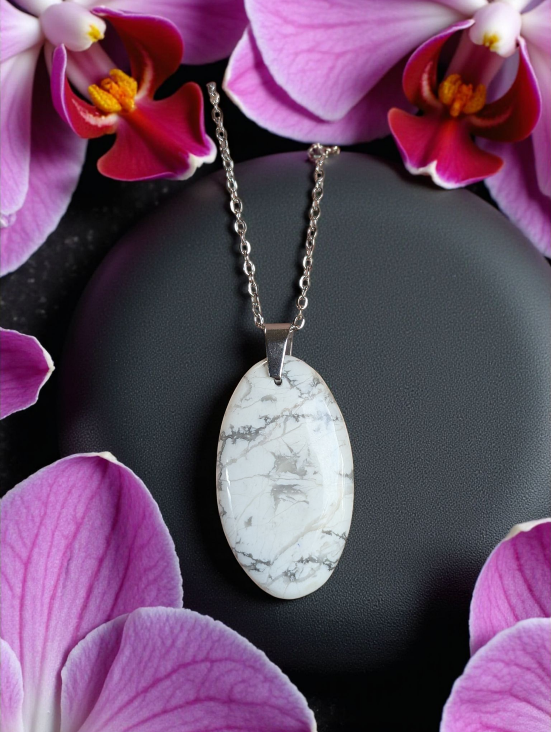 Pendentif en howlite sur chaîne en acier inoxydable N°4