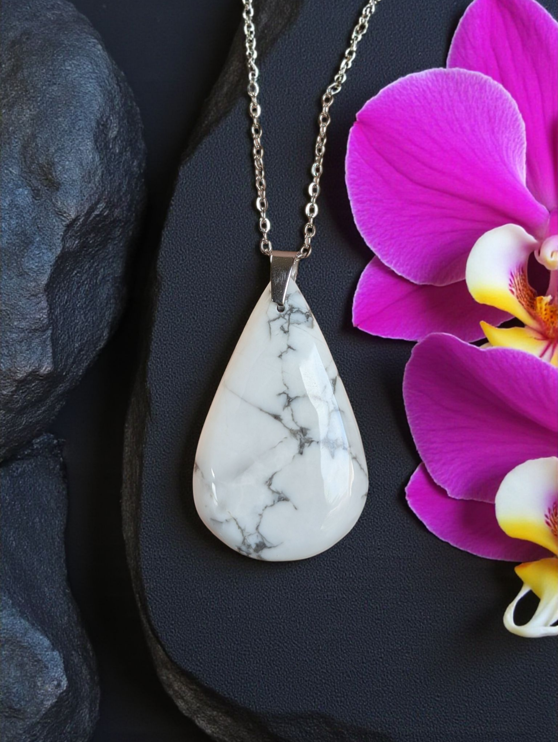 Pendentif en howlite sur chaîne en acier inoxydable au choix (fine ou snake).