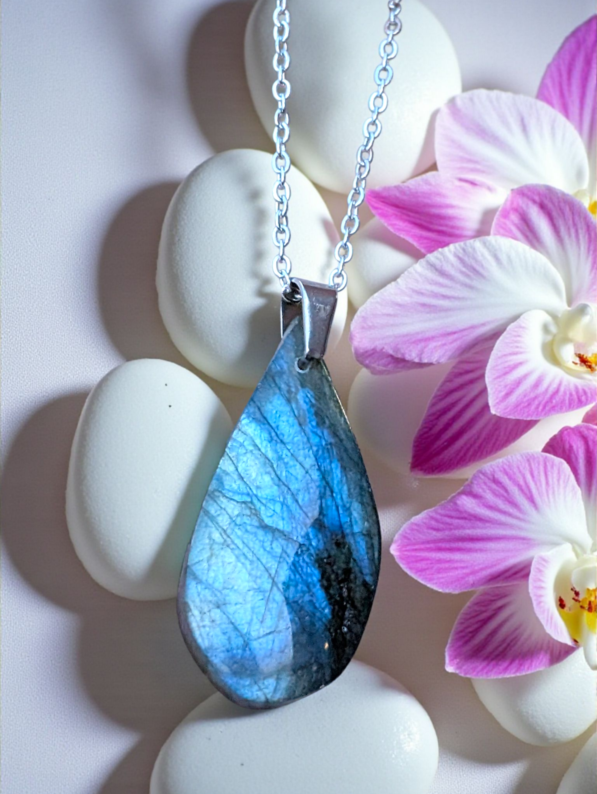 Pendentif en labradorite sur chaîne en acier inoxydable N°32