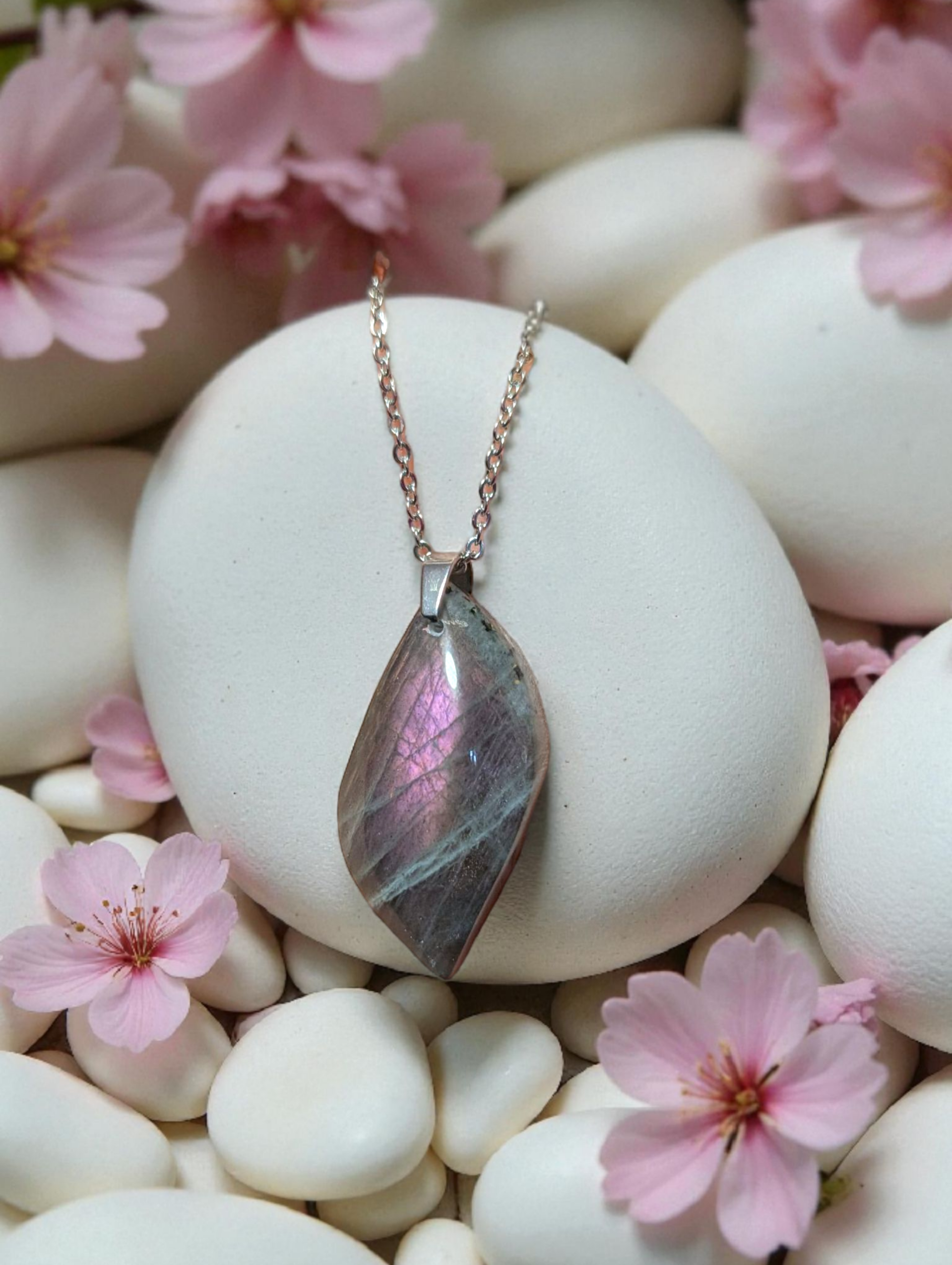 Pendentif en labradorite spectrolite sur chaîne en acier inoxydable N°3