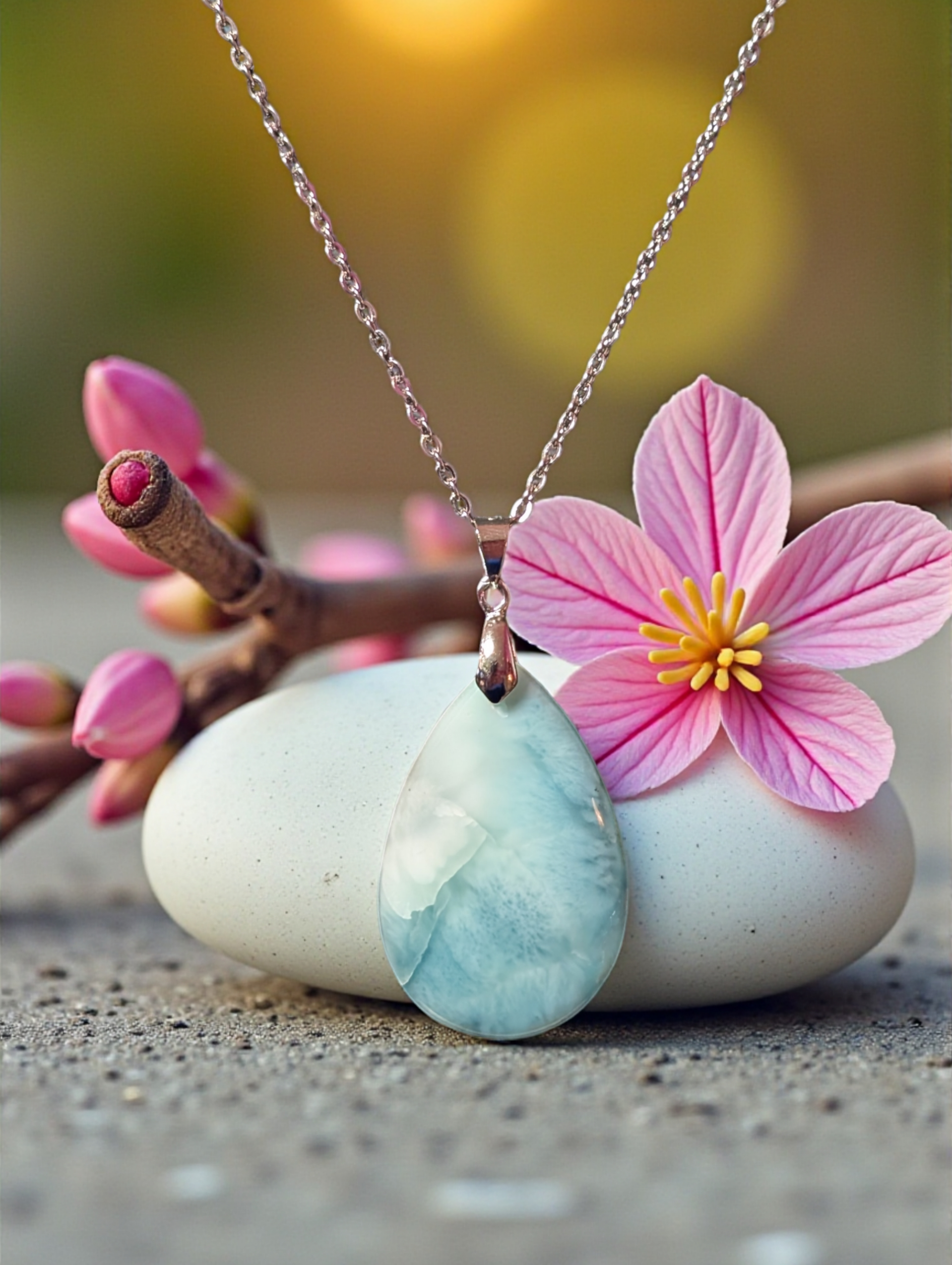 Pendentif en larimar naturel sur chaîne en acier inoxydable.
